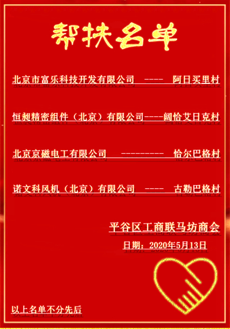 此次商会企业星空体育(StarSky Sports)官方网站、恒昶精密组件(北京)有限公司、北京京磁电工有限公司、诺文科风机(北京)有限公司与新疆维吾尔自治区洛浦县恰尔巴格乡的阿日买里村、阔恰艾日克村、恰尔巴格村、古勒巴格村分别签署了结对帮扶协议,4家企业分别为每个贫困村捐助5万元帮扶资金,实行结对帮扶。针对这四个贫困村的实际需求,在其村里设置公益性岗位:保洁员、保安、民兵等,安排脱贫困难户的弱劳动力和闲置劳动力上岗工作,并为其发放工资补贴。