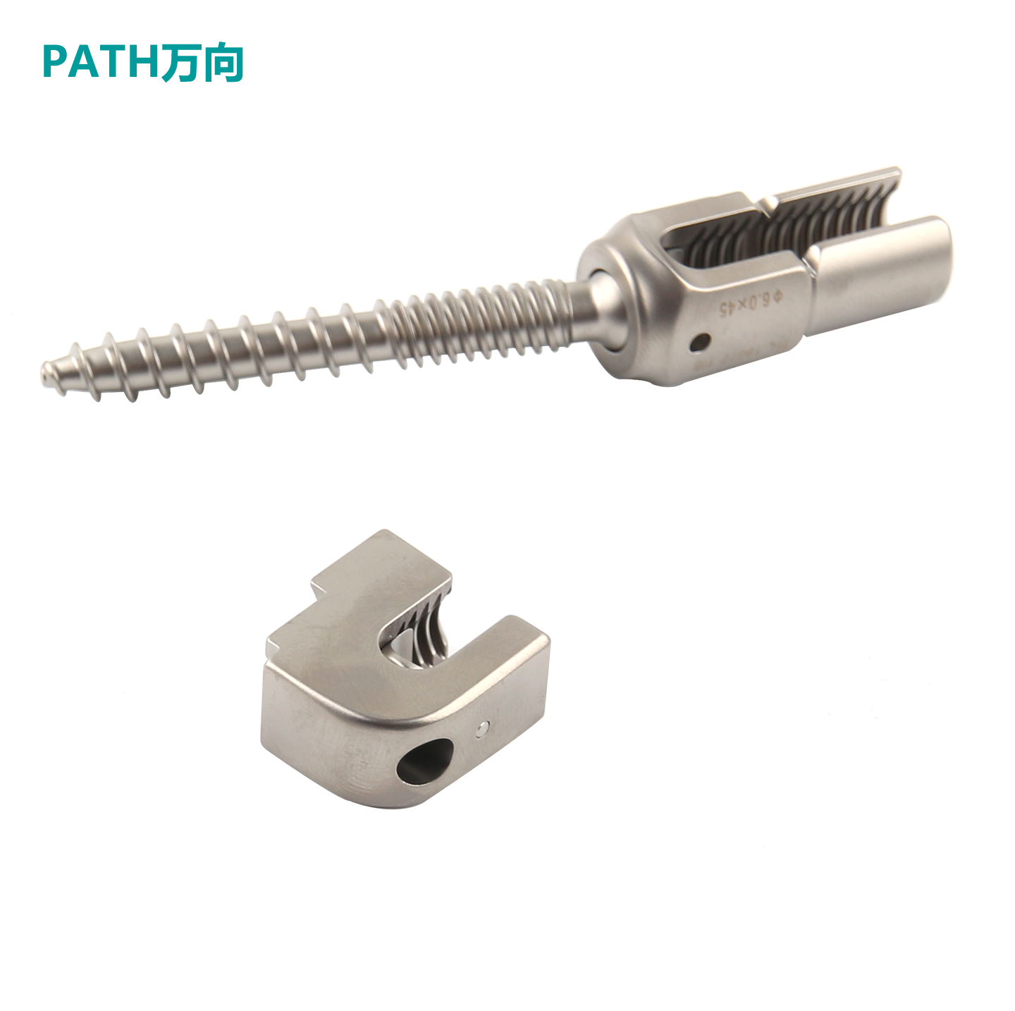 3、单轴螺钉双螺纹设计,增强其对皮质骨的把持力。